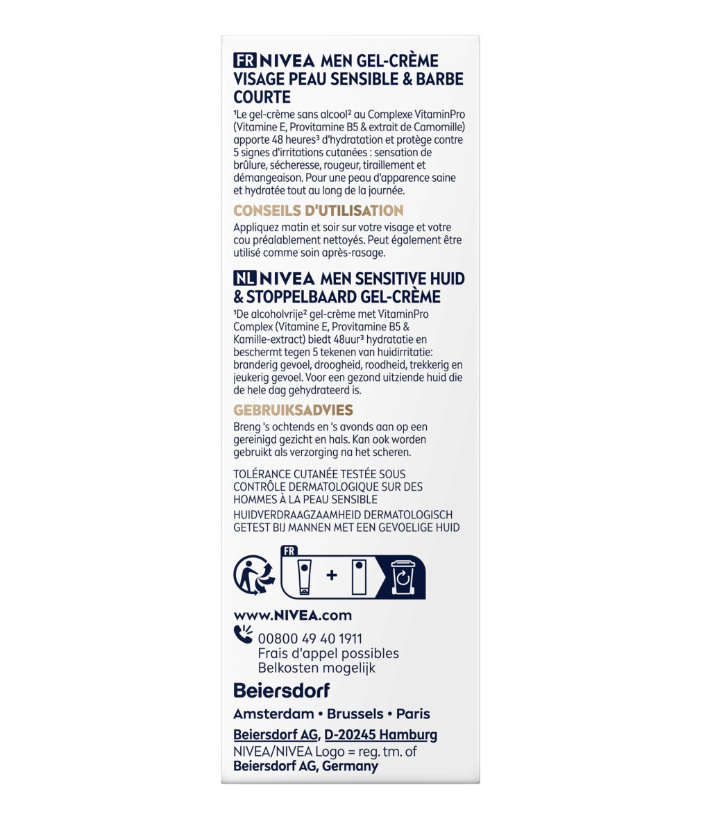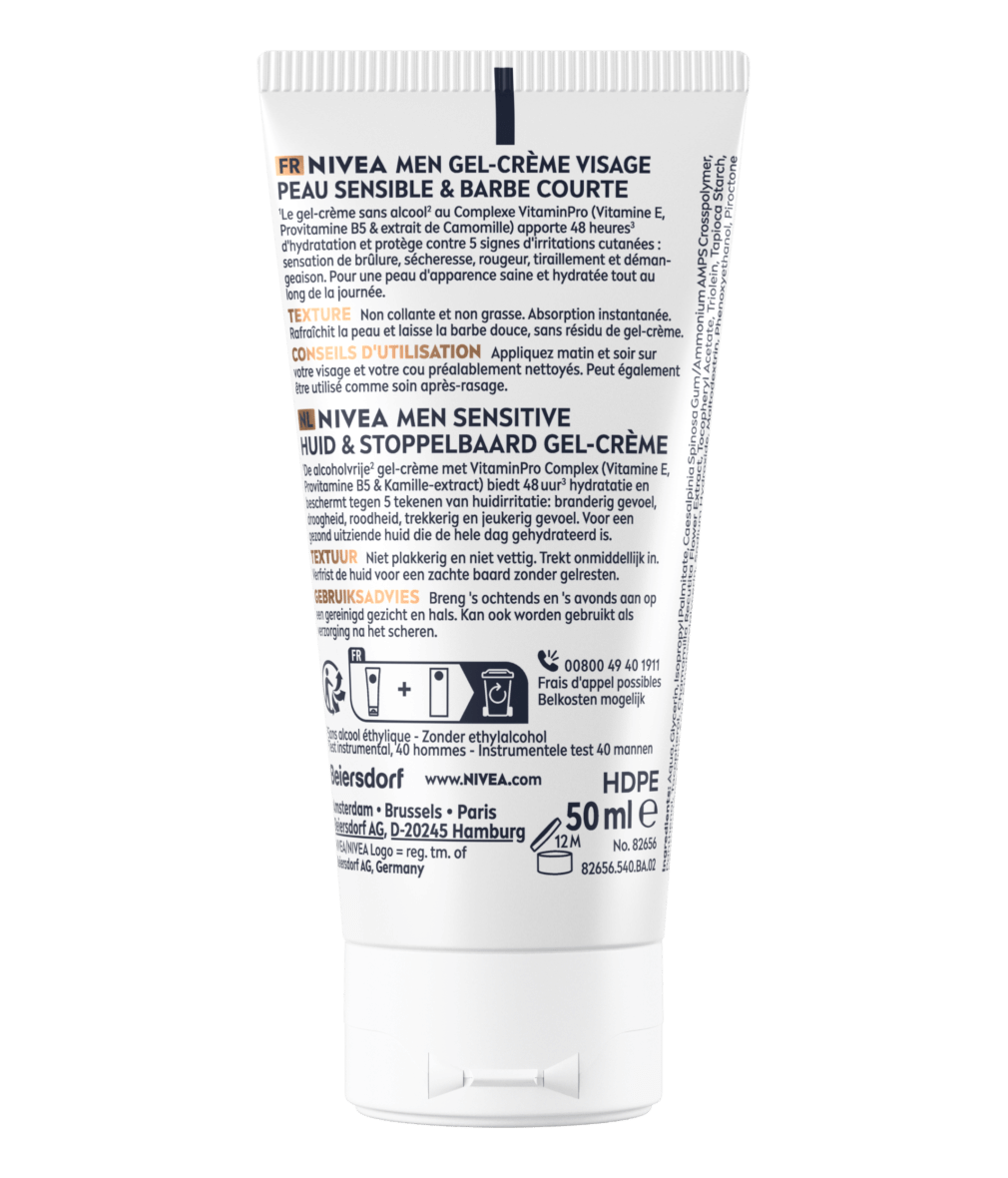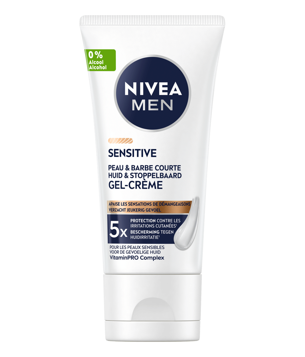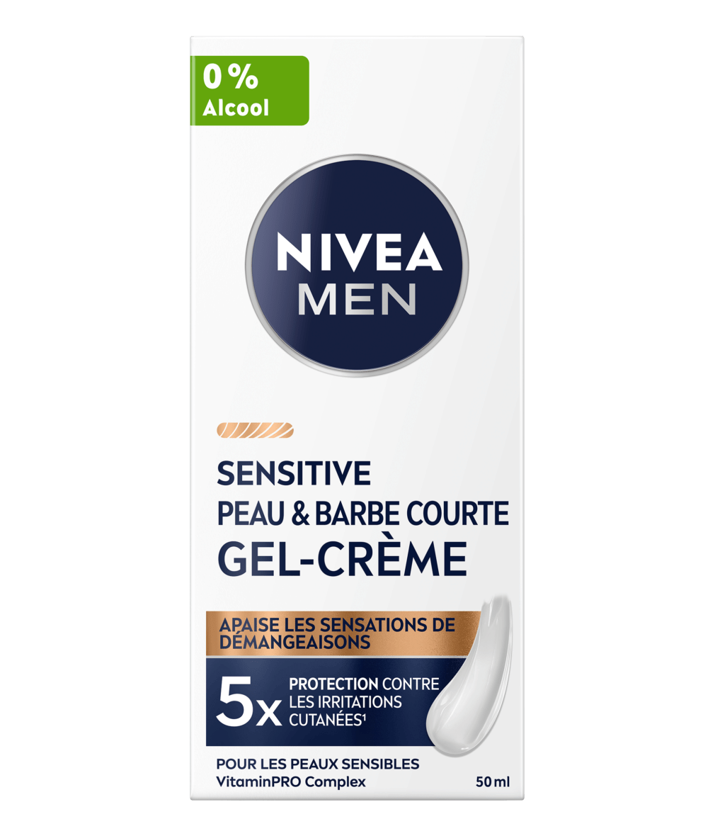 Le Gel-Crème Peau & Barbe courte NIVEA MEN SENSITIVE apaise les sensations de démangeaisons, hydrate le visage et protège contre les irritations cutanées.