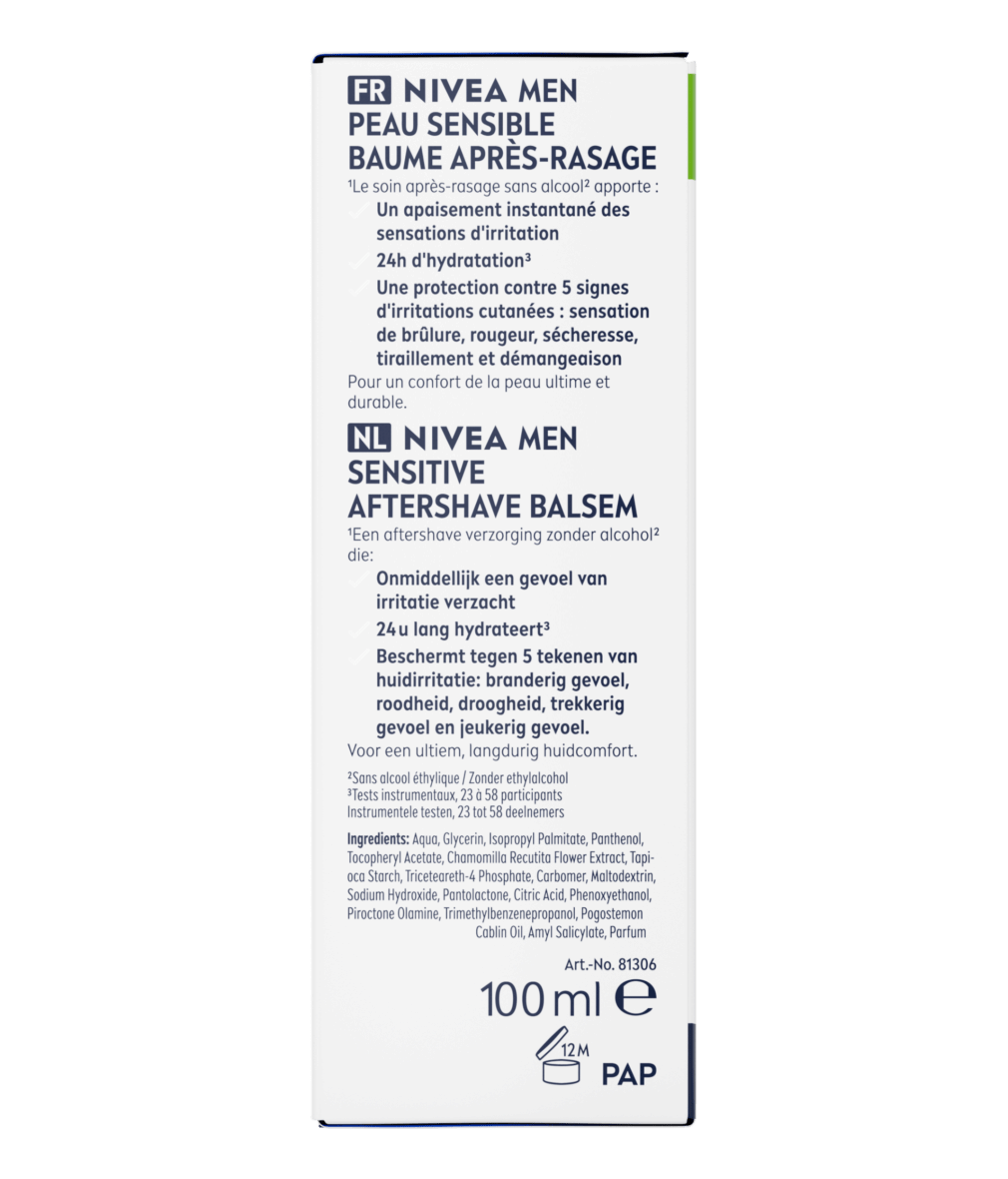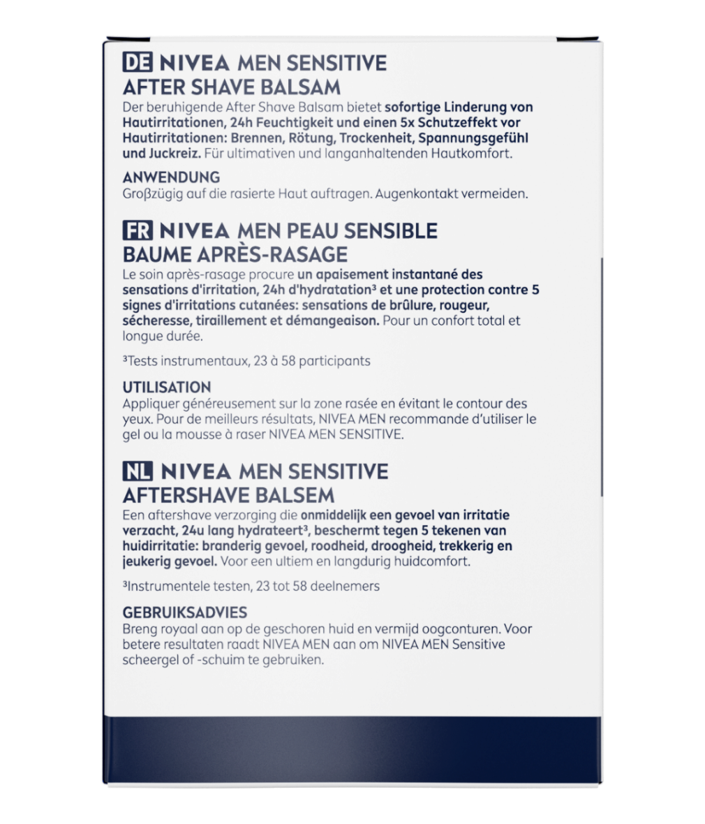 Le Baume Après-Rasage NIVEA MEN Peau Sensible, est conçu pour les peaux sensibles des hommes, afin de réduire les irritations de la peau et procurer une hydratation longue durée.