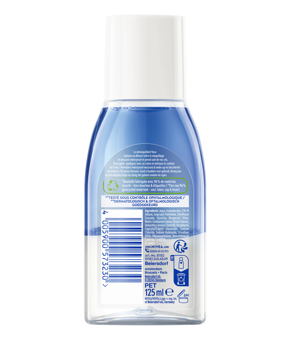 Ce démaquillant yeux biphase retire efficacement le maquillage waterproof. Sa formule est enrichie en Bleuet et en Eau Purifiée.