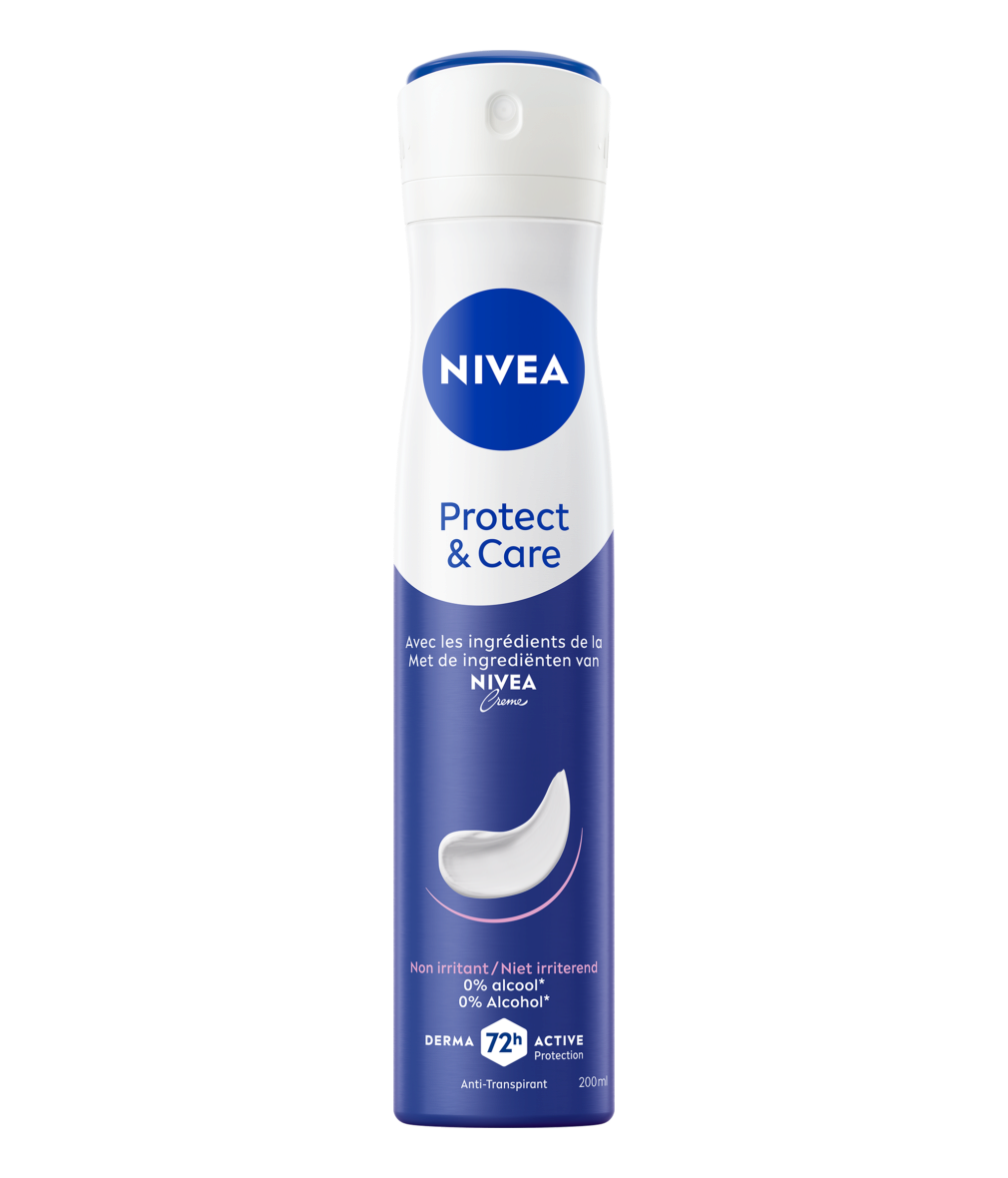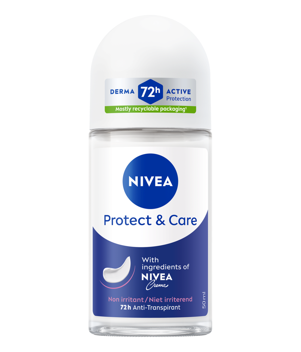 Le déodorant bille NIVEA anti-transpirant Protect & Care 72H formulé sans alcool, prend soin de votre peau et apporte une protection active pendant 72H.
