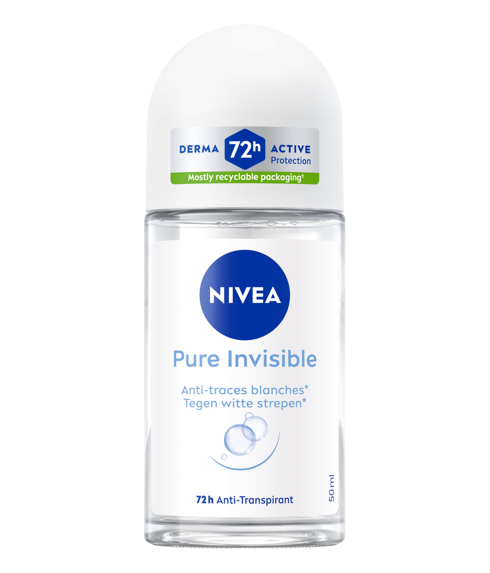 Le déodorant bille femme NIVEA anti-transpirant Pure Invisible 72H formulé sans alcool, prend soin de votre peau et apporte une protection active pendant 72H.