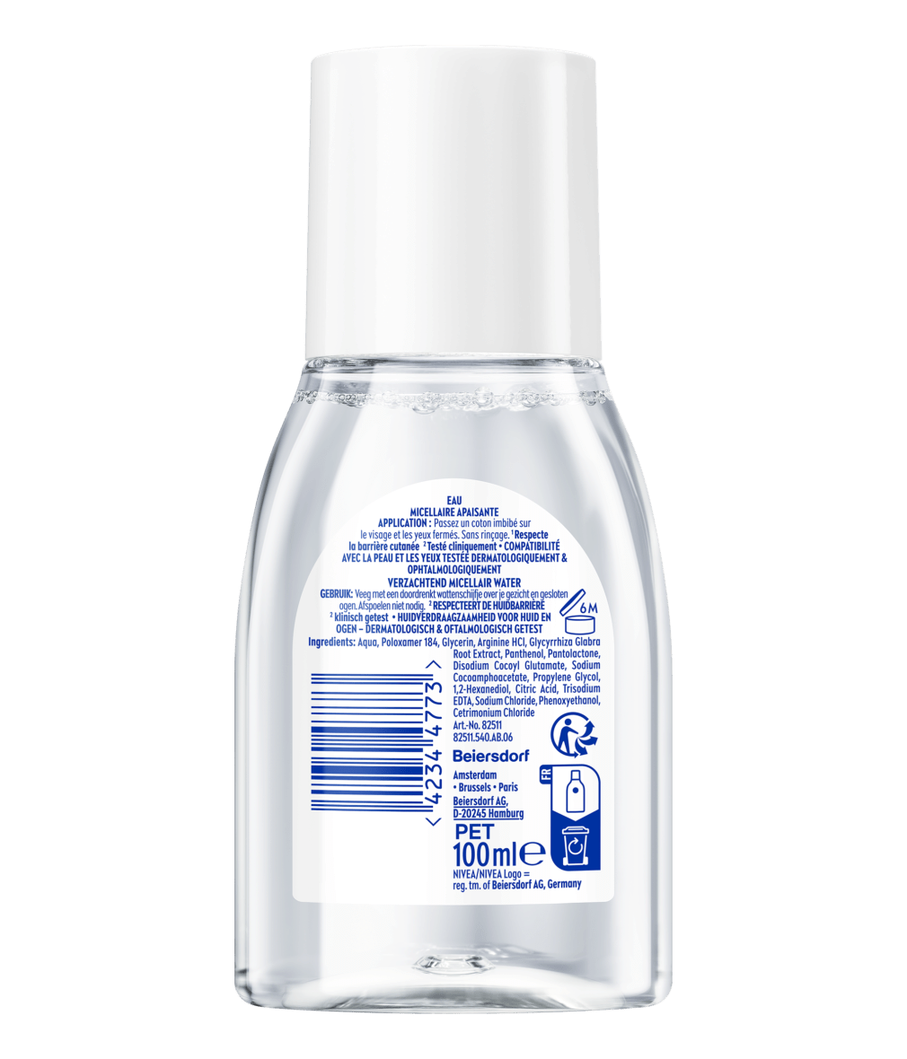 Apaisez et nettoyez votre peau avec l’Eau Micellaire Apaisante NIVEA. Elle élimine en douceur le maquillage, les impuretés et les filtres UV, tout en réduisant rougeurs et sensations de sécheresse.
