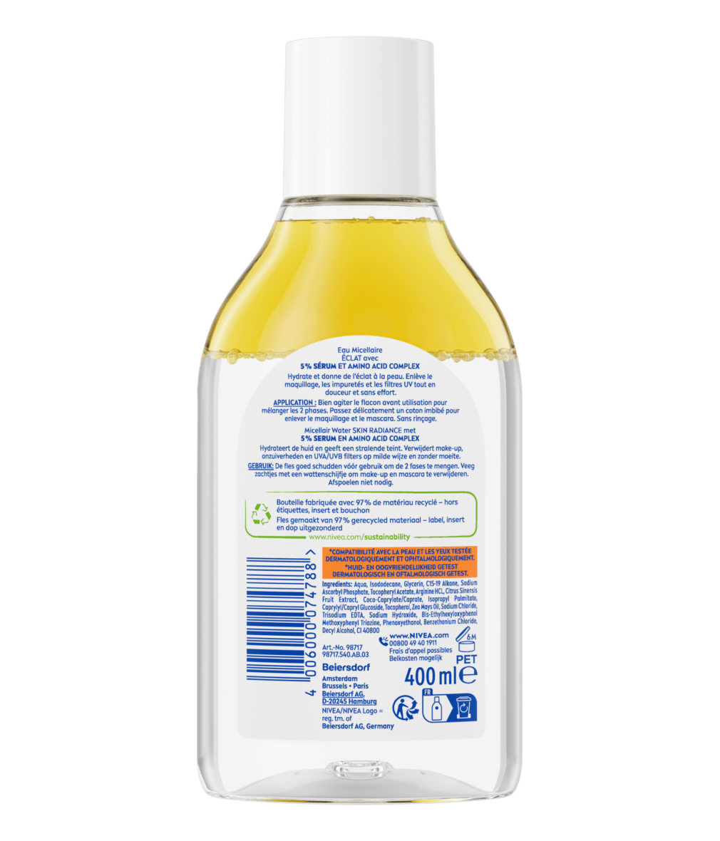 Commencez votre routine du matin par un nettoyage en profondeur et rafraîchissant grâce à la nouvelle Eau Micellaire NIVEA infusée au sérum SKIN GLOW pour démarrer votre journée avec la sensation d'une peau énergisée.