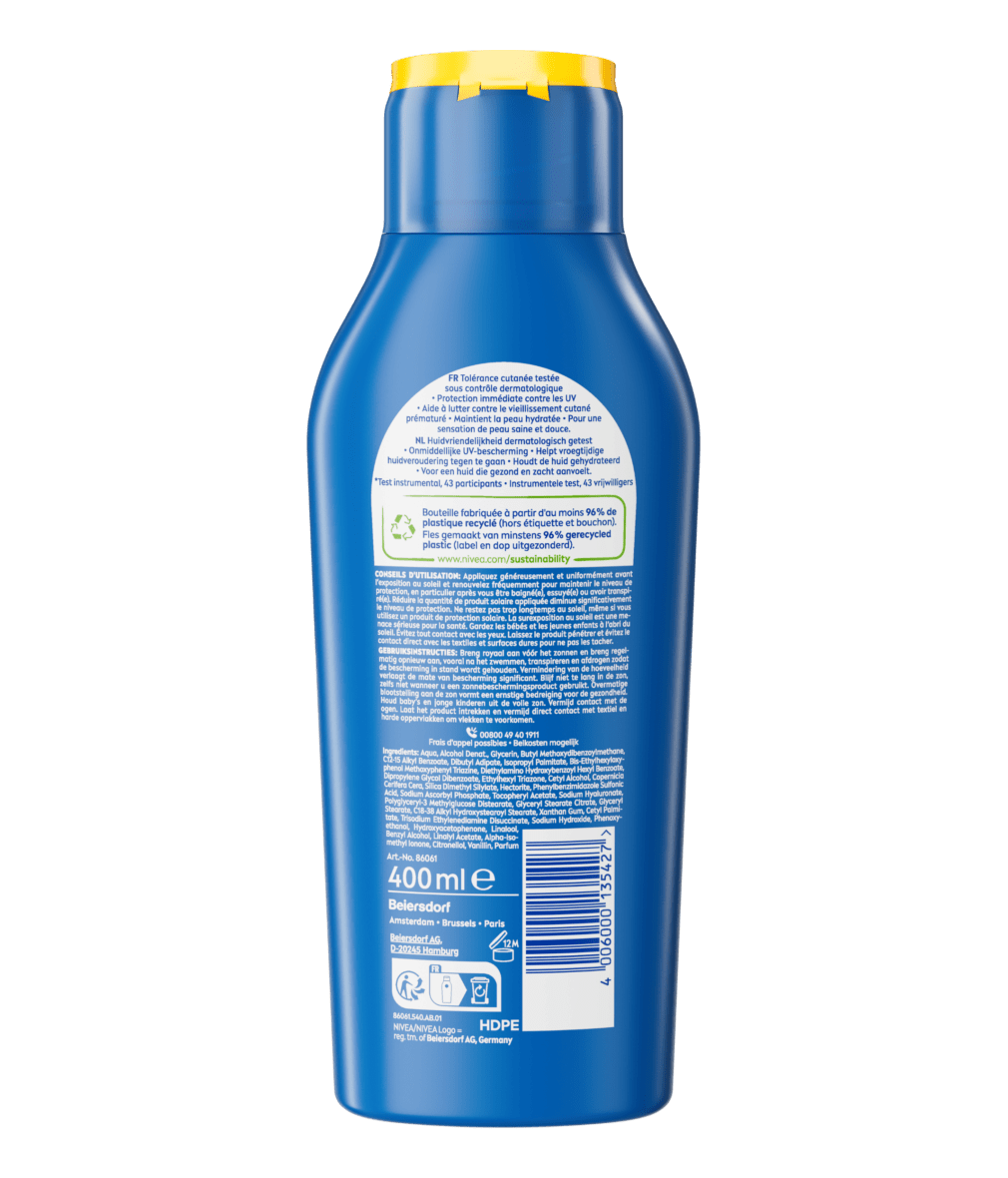 Ce lait Protect & Hydrate de NIVEA SUN offre une protection immédiate contre les UV, et aide à lutter contre le vieillissement cutané prématuré.