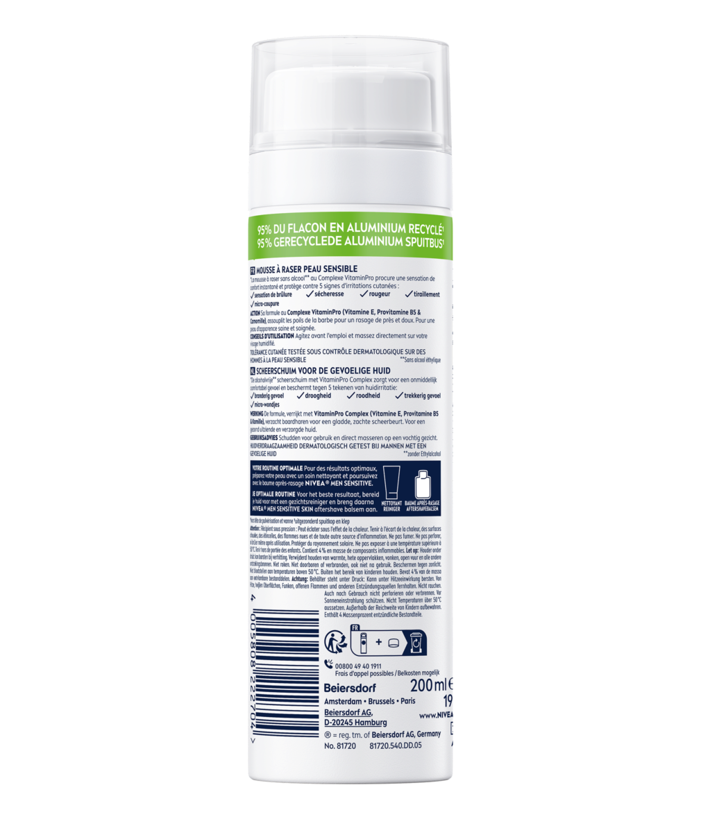 La mousse à raser NIVEA MEN a été conçue pour les peaux sensibles. Le produit adoucit les poils de barbe - pour un rasage de près et en douceur, sans irritation et sans brûlure de la peau.