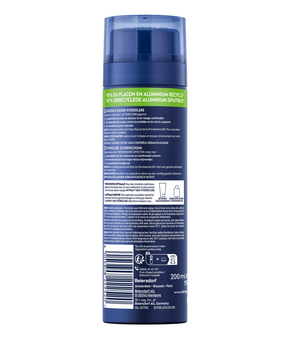 La mousse à raser NIVEA MEN Hydrocare apporte 3 actions soin : un rasage confortable, une protection de la peau et une sensation de peau hydratée.
