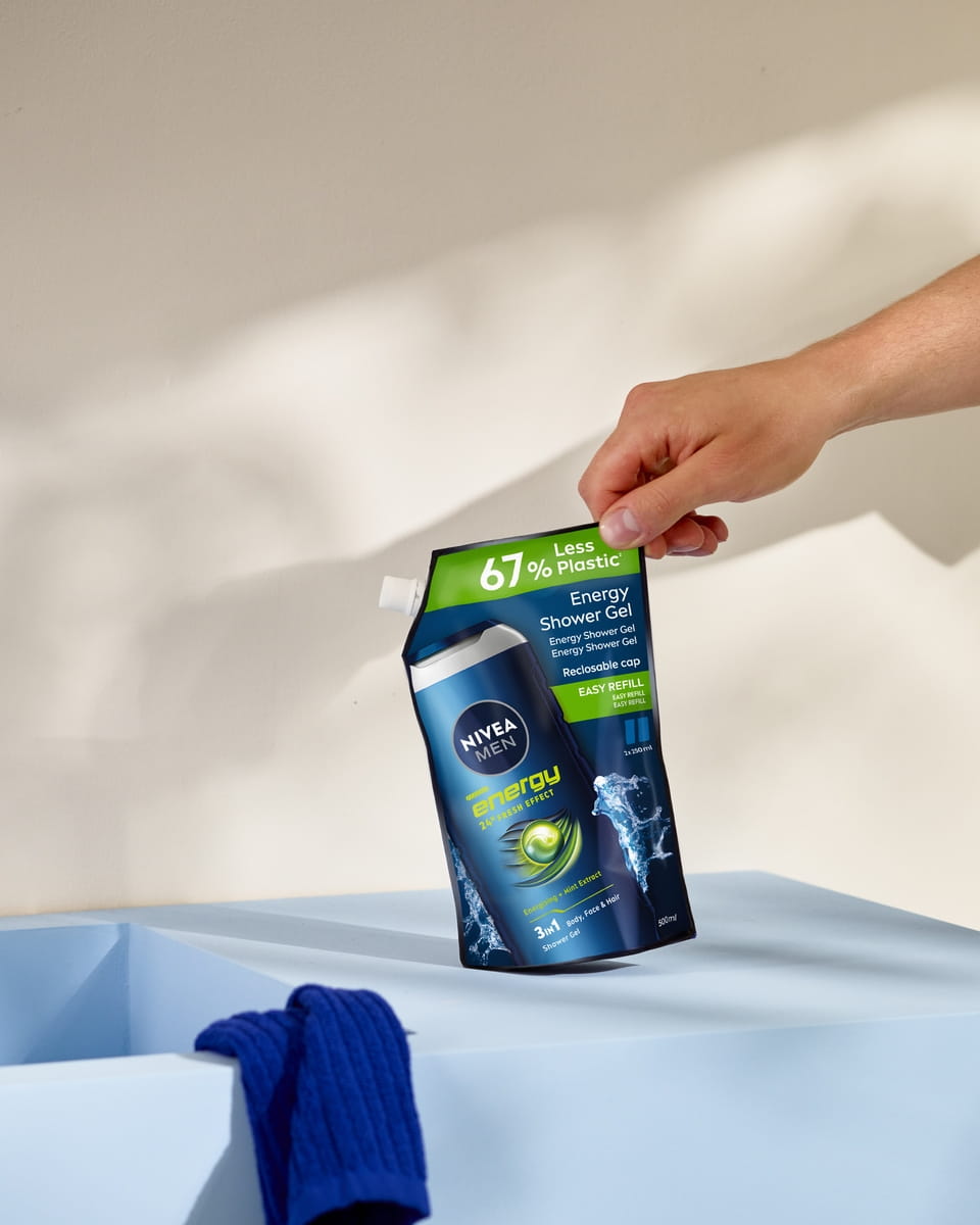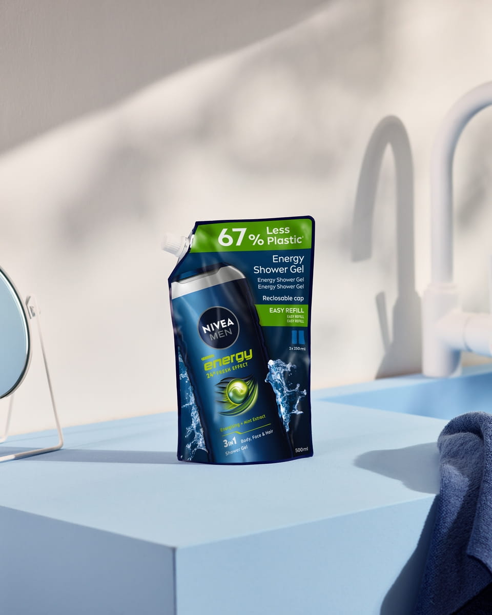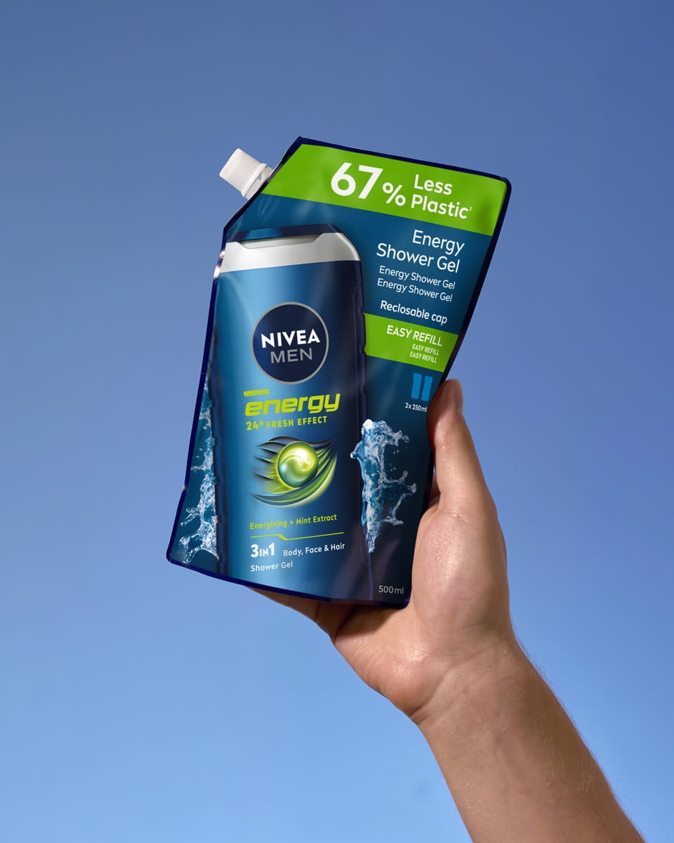 Le gel douche 3 en 1 Homme Energy format recharge, à l'extrait naturel de menthe, vous procurera une sensation de fraîcheur durable, laissant votre peau et vos cheveux revitalisés et soignés.