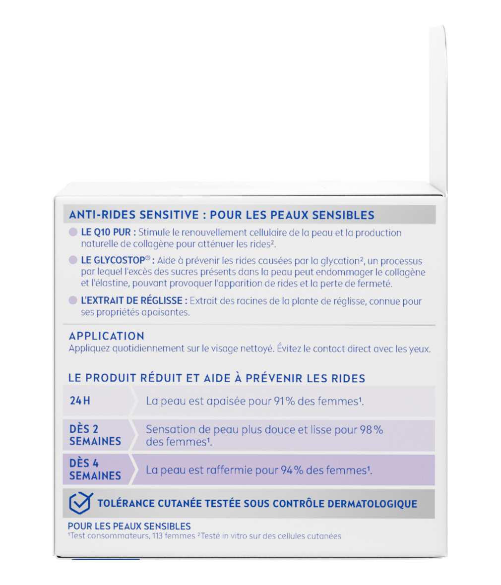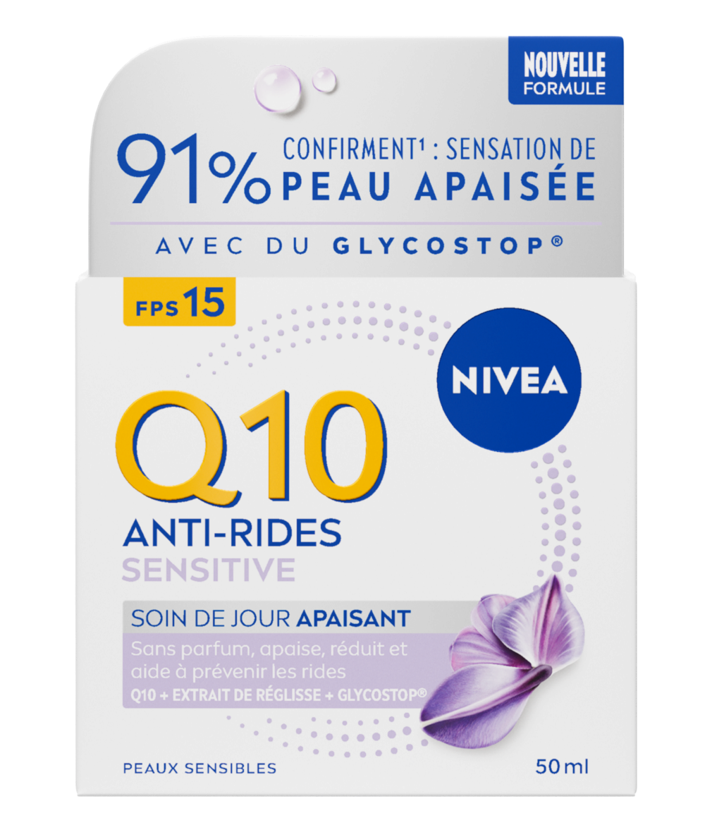 Le Soin de Jour Q10 Anti-Rides SENSITIVE SPF 15 au Q10 Pur et à l'Extrait de Réglisse apaise les peaux sensibles et aide à prévenir l'apparition des rides.