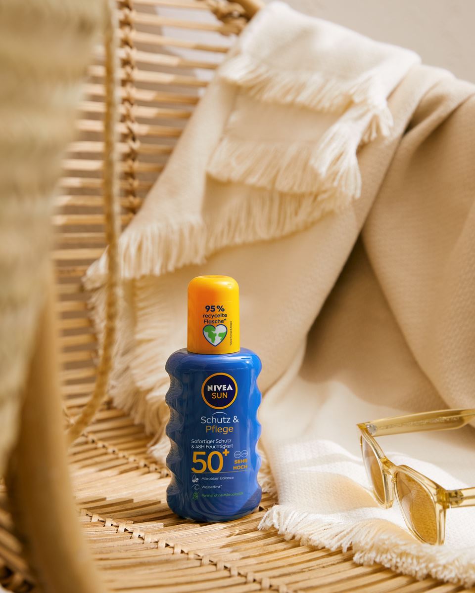 La protection solaire spray Protect & Hydrate FPS 50+ de NIVEA SUN assure une protection externe efficace contre les UVA/UVB, ainsi qu'une protection interne de la peau grâce à la nouvelle technologie CITRACELL-PROTECT enrichie en vitamine C et Acide Hyaluronique.